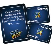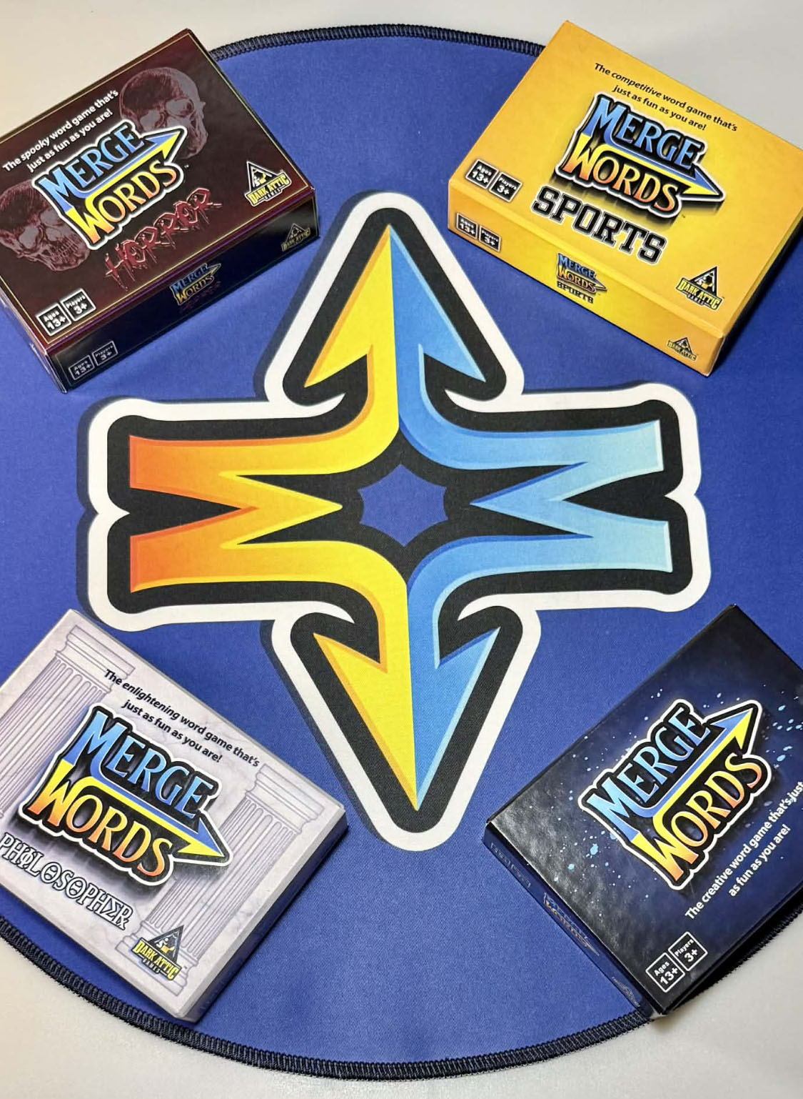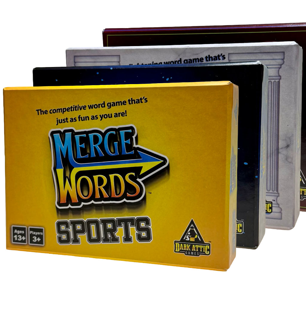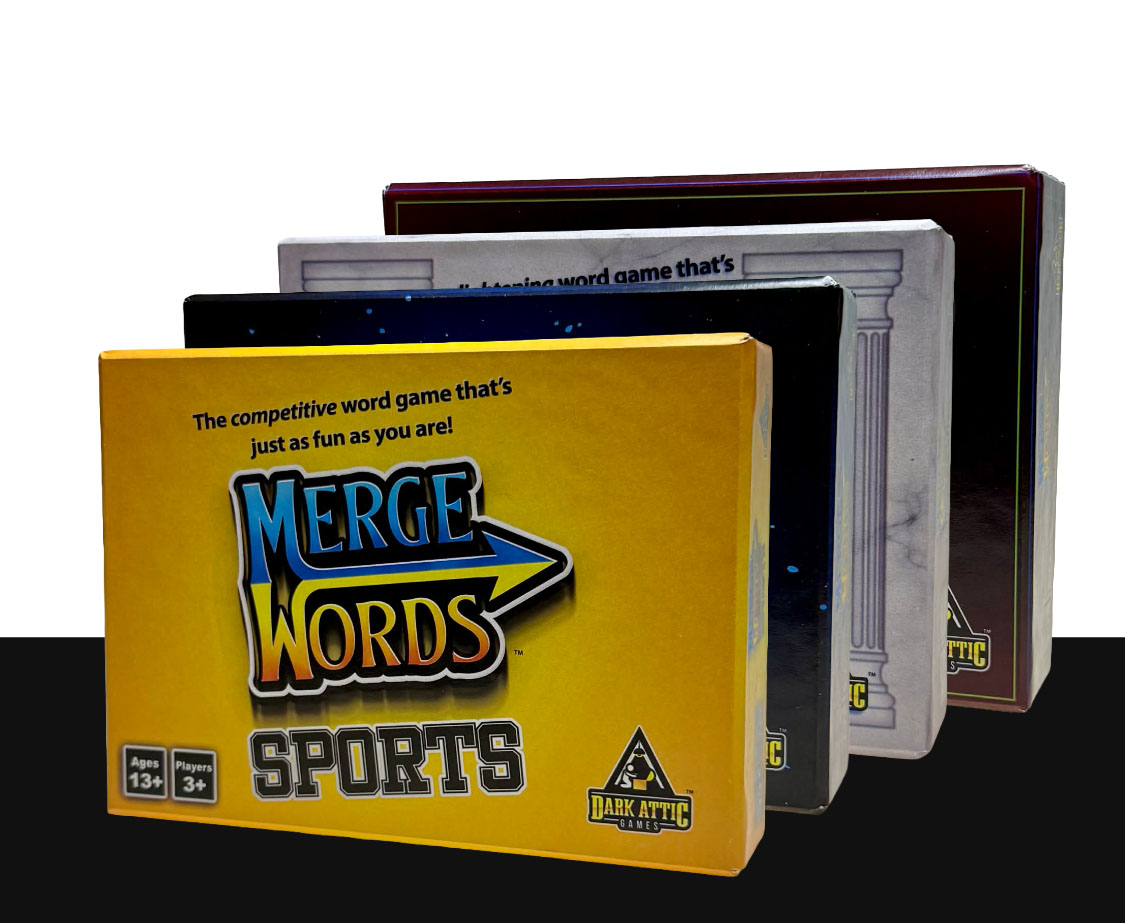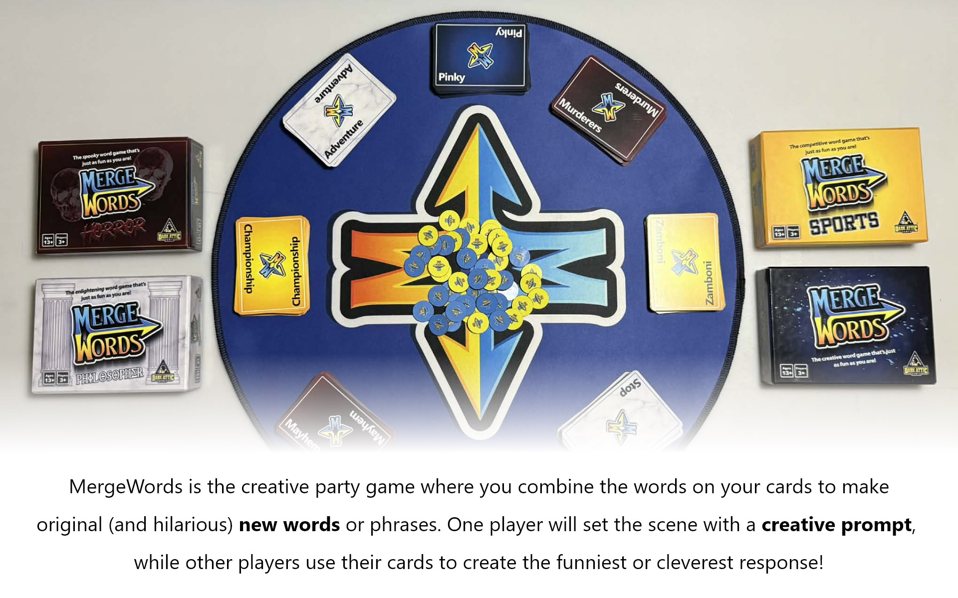 With the 4 different versions and the additional themed packs, there are tons of possible card combos and modes for gameplay variations. The creativity comes from players creating MergeWords, and the "Choosider," who decides which funny (or outrageous) criteria that players use to build their MergeWords.